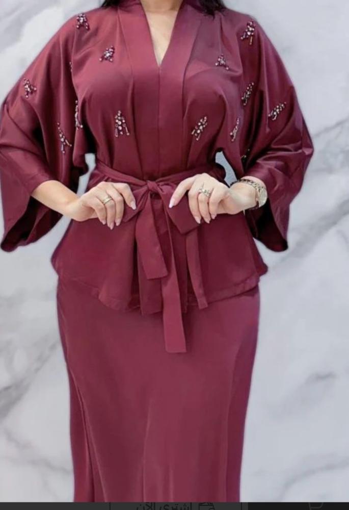 طقم بلوزة و تنورة بخامة الستان الناعمة